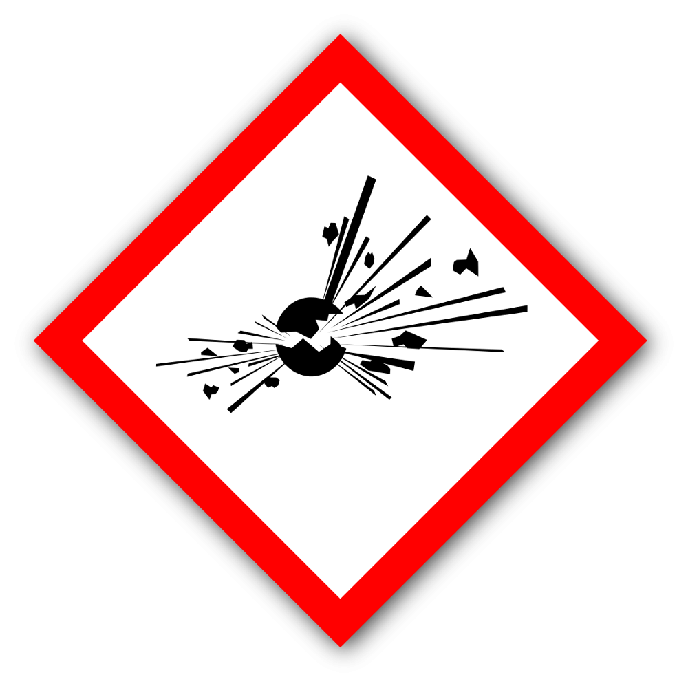 ![]() | GHS01 | Explodierende Bombe – Explosive Stoffe | Sprengstoffe, Feuerwerkskörper, Zündmittel |