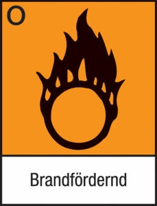 Flamme über einem Kreis Für entzündend (oxidierend) wirkende Gase, Flüssigkeiten oder Feststoffe | ![]() | ![]() | Brandfördernd Kennbuchstabe: O |