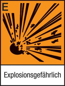 Explodierende Bombe | ![]() | ![]() | Explosionsgefährlich Kennbuchstabe: E |
