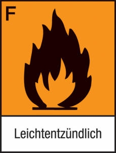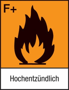 Flamme Für entzündbare Gase, Aerosole, Flüssigkeiten oder Feststoffe | ![]() | ![]() | Hochentzündlich Kennbuchstabe: F+ |