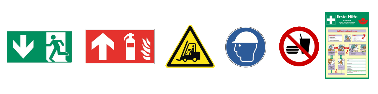 Sicherheitskennzeichen umfassen alle Beschilderungen, die dem Schutz von Personen dienen und ein sicheres Verhalten in Arbeitsumgebungen unterstützen. Sie helfen dabei, Risiken zu minimieren, indem sie auf Gefahren hinweisen, Verhaltensregeln vorgeben oder im Notfall den Weg zu Rettungseinrichtungen anzeigen. Dazu zählen unter anderem Warnzeichen, Gebots- und Verbotsschilder sowie Rettungs- und Erste-Hilfe-Zeichen.