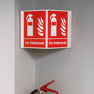 Eine schnelle Reaktion im Brandfall kann Leben retten. Brandschutzschilder zeigen deutlich, wo sich Feuerlöscher, Wandhydranten oder Brandmeldeeinrichtungen befinden.