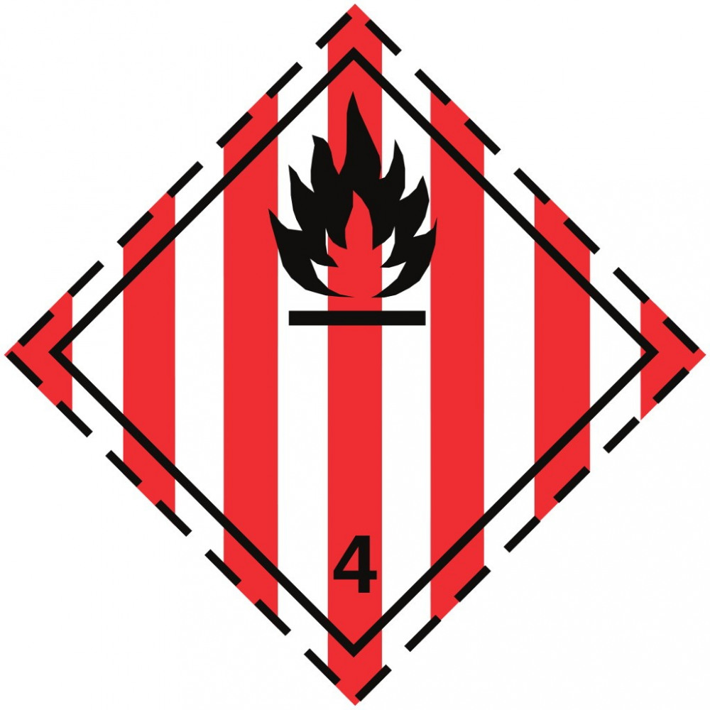![]() | Klasse 4: Entzündbare feste, selbstzersetzliche und desensibilisierte Stoffe, selbstentzündliche Stoffe, Stoffe, die in Berührung mit Wasser entzündbare Gase entwickeln |