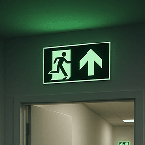 Wenn in einem Gebäude keine Notfallbeleuchtung vorhanden ist, schreibt die Norm den Einsatz von langnachleuchtenden Rettungszeichen vor.