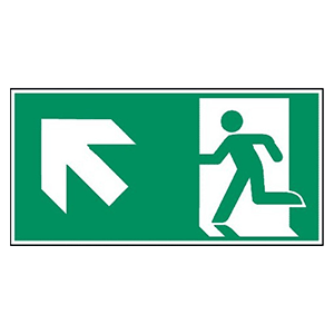 Notausgang aufwärts quer links Schild | ![]() | Schräg aufwärts nach links: Etagenwechsel kombiniert mit einer Richtungsänderung nach links. |