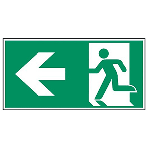 Notausgang links Schild | ![]() | Pfeil nach links: abbiegen nach links in Laufrichtung. |