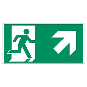 Notausgang aufwärts quer rechts Schild | ![]() | Schräg aufwärts nach rechts: Etagenwechsel kombiniert mit einer Richtungsänderung nach rechts. |