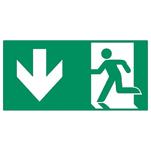 Notausgang abwärts Schild | ![]() | Pfeil nach unten: Abwärtsbewegung, z. B. eine Treppe oder Rampe hinunter. |
