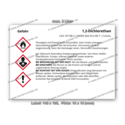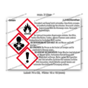 Fertiges GHS-Etikett mit Gefahrtoff-Piktogrammen, Signalwort und H- und P-Sätzen (Gefahren- und Sicherheitshinweisen).