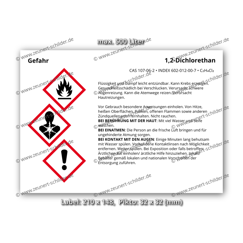 | Behältervolumen | Etikettengröße | Piktogrammgröße |