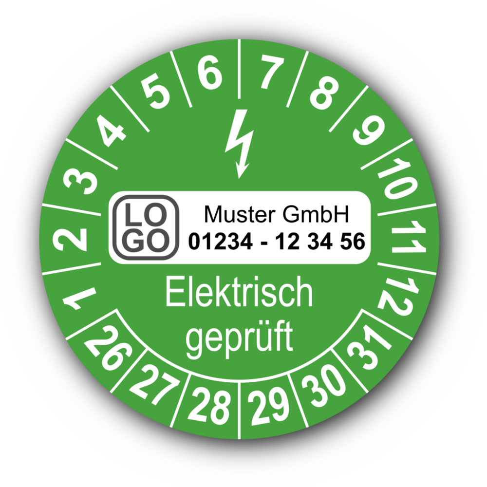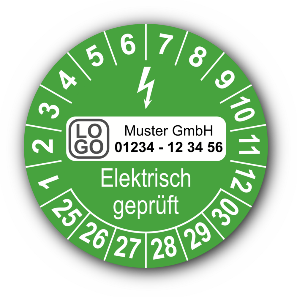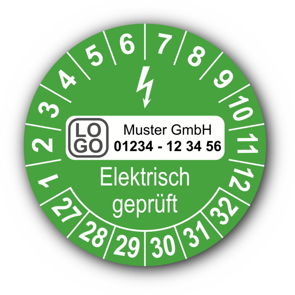 Elektrisch geprüft, grün, mit Wunschtext