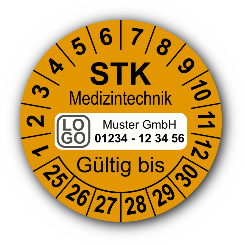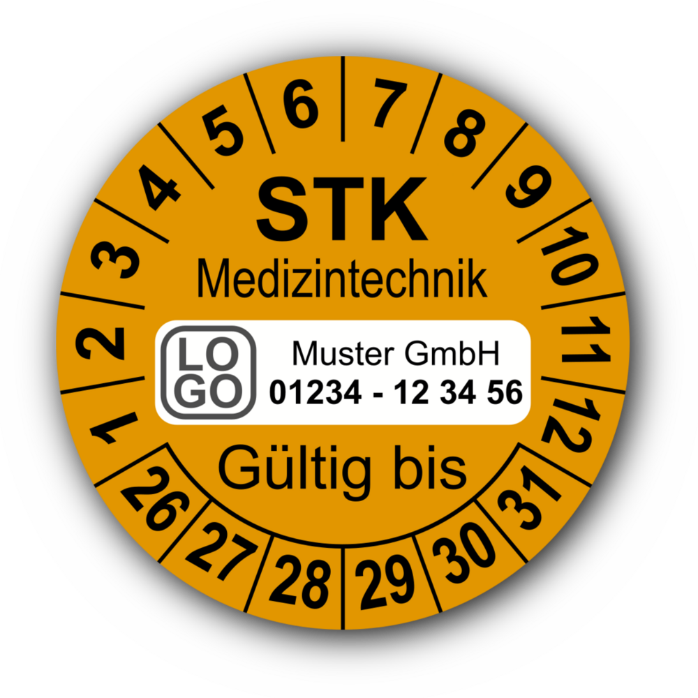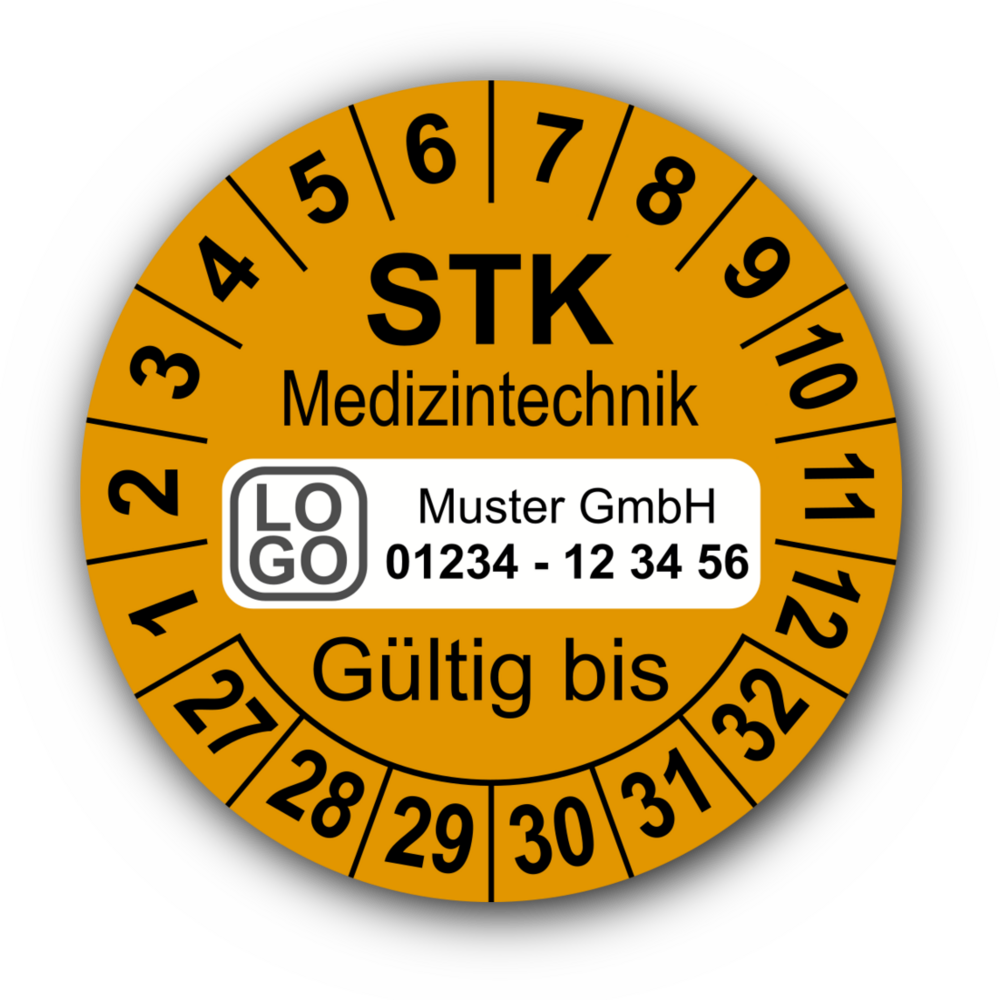 Medizintechnik STK Gültig bis, orange, mit Wunschtext