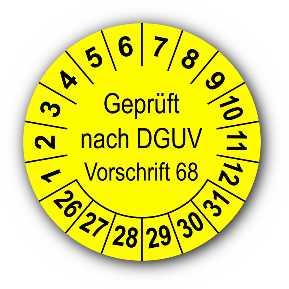 Geprüft nach DGUV Vorschrift 68, gelb
