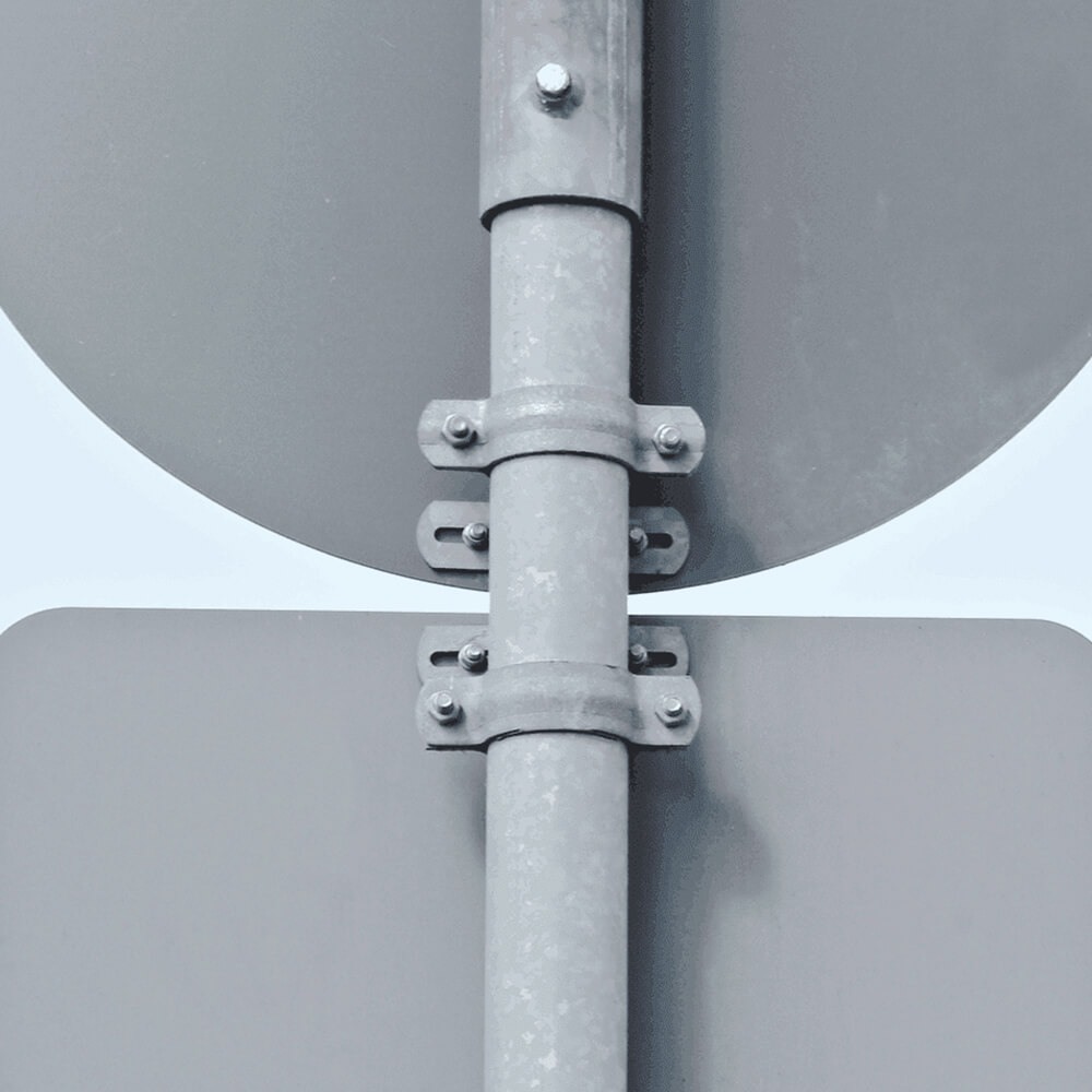 Für die Montage öffnen Sie die Schelle, legen sie um das Rohr und fixieren beide Hälften mit den beiliegenden Schrauben und Muttern. Anschließend verschrauben Sie Ihr Schild oder Bauteil an der flachen Vorderseite der Schelle. Durch die kombinierte Stabilität des T-Profils und die Feuerverzinkung ergibt sich eine wartungsfreie, langlebige Lösung für Baustellen, Betriebsgelände oder den öffentlichen Verkehrsraum.