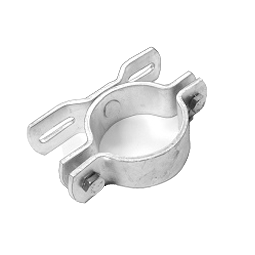 Die zweiteilige Rohrschelle der Baureihe R 007–R 707 aus feuerverzinktem Stahl ist für den Einsatz an Rundrohren mit Lochabstand 70 mm konzipiert und ermöglicht eine stabile Befestigung von Schildern und Bauteilen.