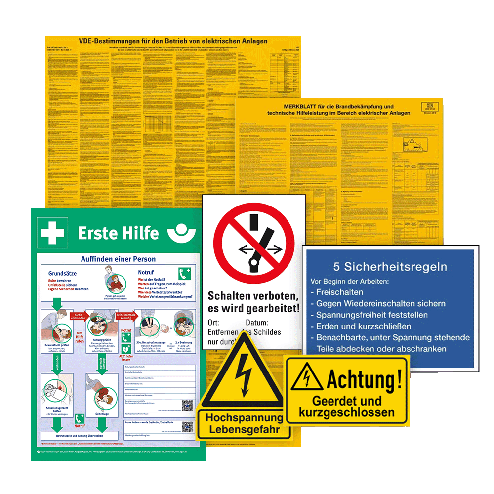 | Inhalt | VDE-Bestimmungen + Sicherheitszeichen-Set |