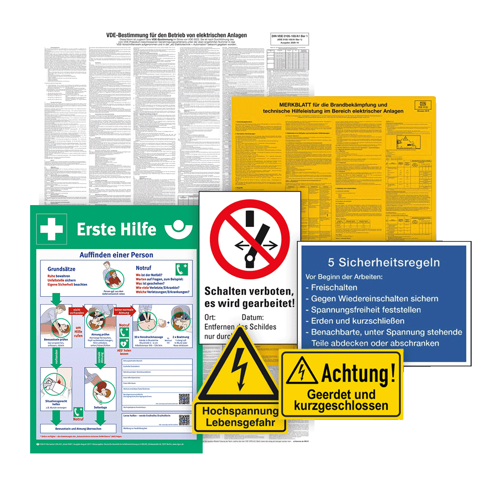 | Inhalt | VDE-Bestimmungen + Sicherheitszeichen-Set |