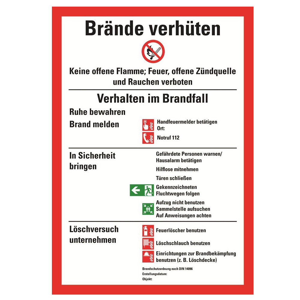Spezielle Version der Brandschutzordnung Teil A für Bereiche mit Handfeuermelder. Enthält zusätzliche Hinweise zur Auslösung und Lage der Melder.